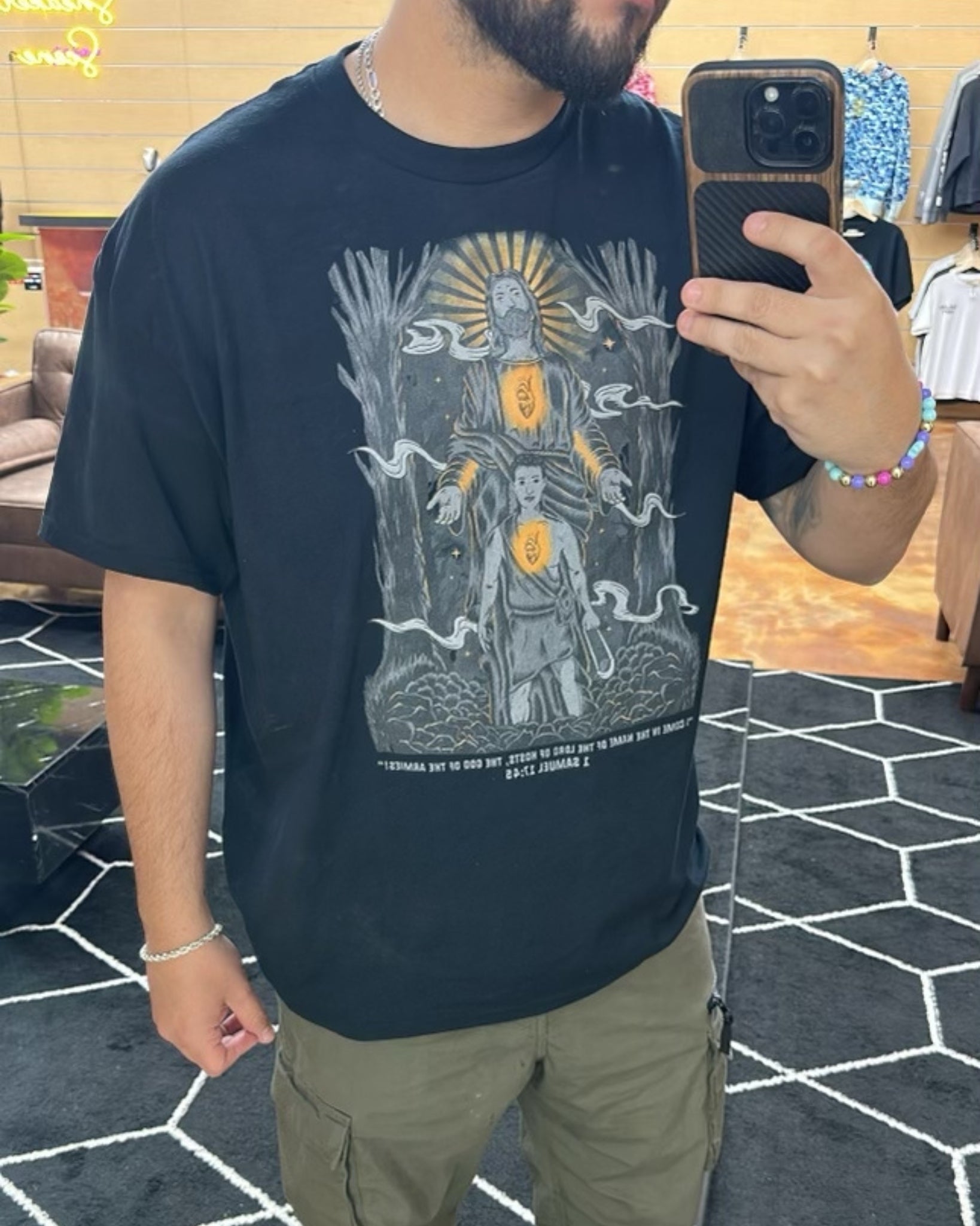 I've had countless encounters where strangers approach me, intrigued by the words or images on my shirt, leading to meaningful discussions about faith and spirituality. It's amazing how something as simple as clothing can break down barriers and open hearts to the message of Christ.